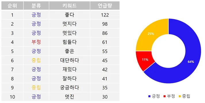 -긍정적인 언급이 64%, 부정적인 언급이 11%로 크로스핏에 대해 주로 긍정적인 이미지를 가진 것으로 보인다. 크로스핏에 대한 새로운 이미지를 만드는 것보다 화제성을 올리는 것을 위주로 마케팅을 하는 것에 이용
