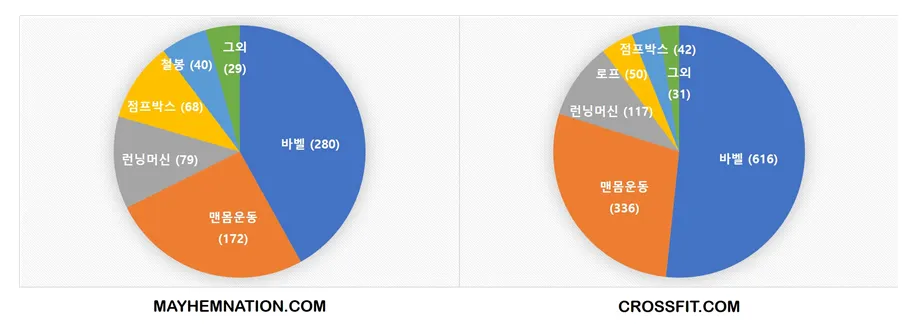크로스핏 관련 홈페이지에 소개된 WoD에 사용된 운동 도구