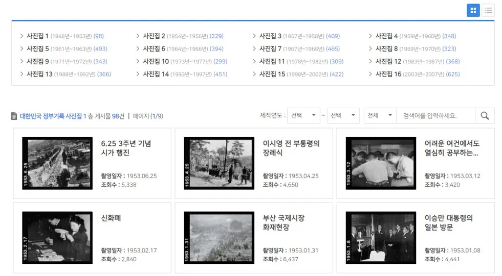 대한민국 정부기록사진집에서 1940~1970년대 사진 2,754장중, 부산지역 사진은 67장