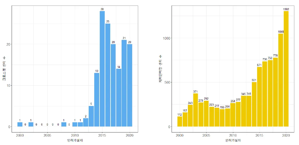 전국 체력단련장업 인허가, 크로스핏 인허가 그래프 현황분석